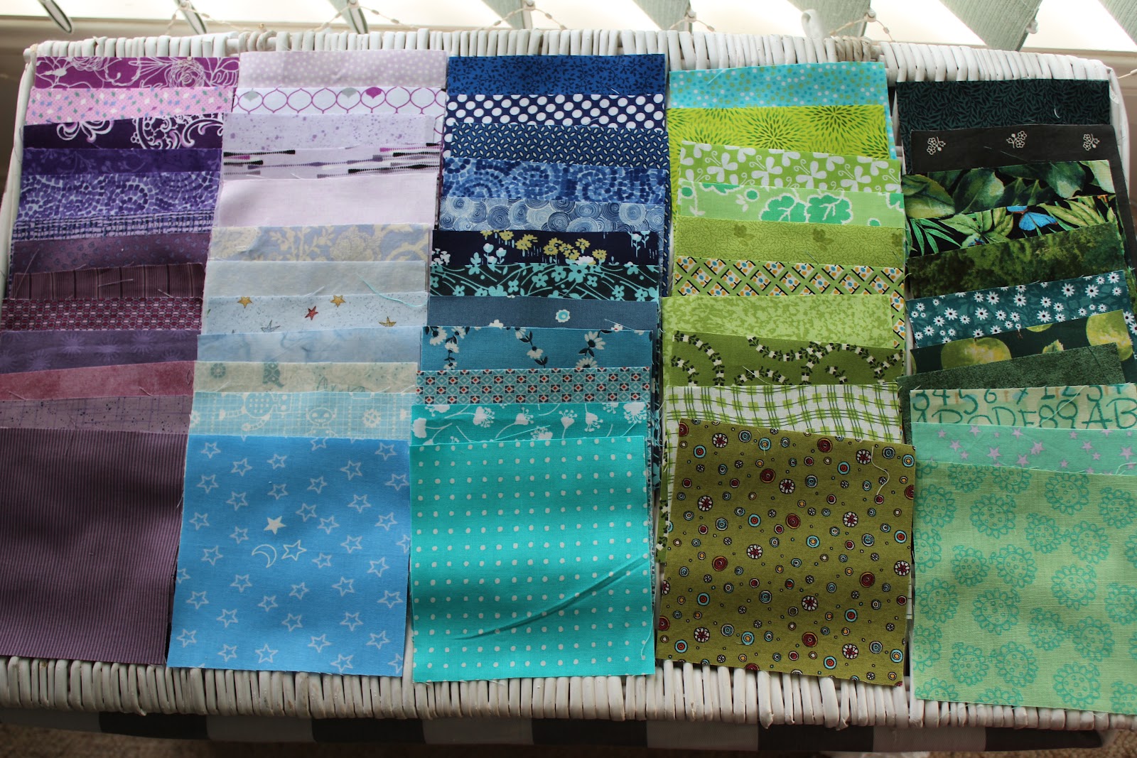 This is one that I had to supply 10 FQs of 'yellow' fabric for and cut into charms by the end of July. I was really surprised how great the return was. There are about 100+ individual charms in various hues of the rainbow.
